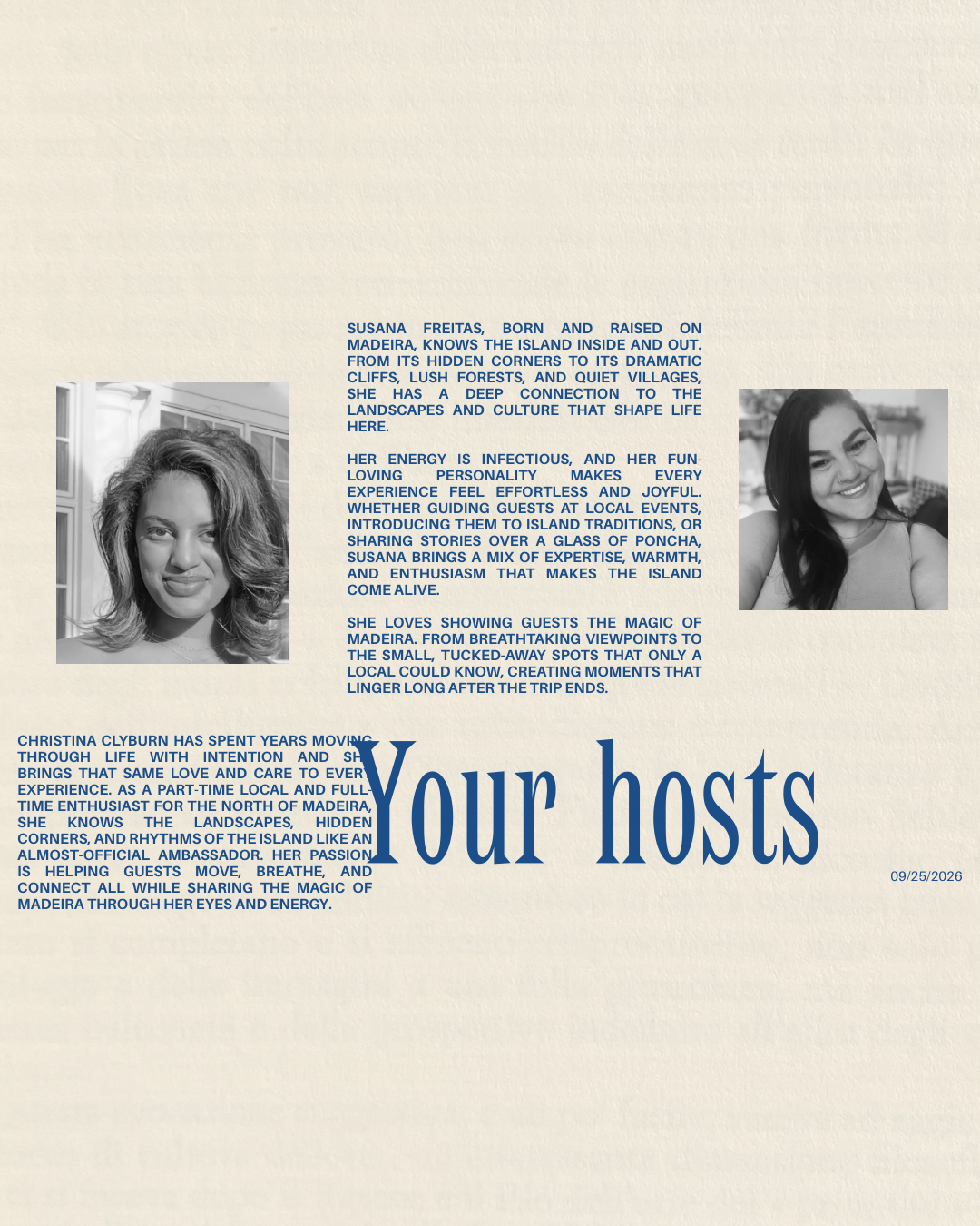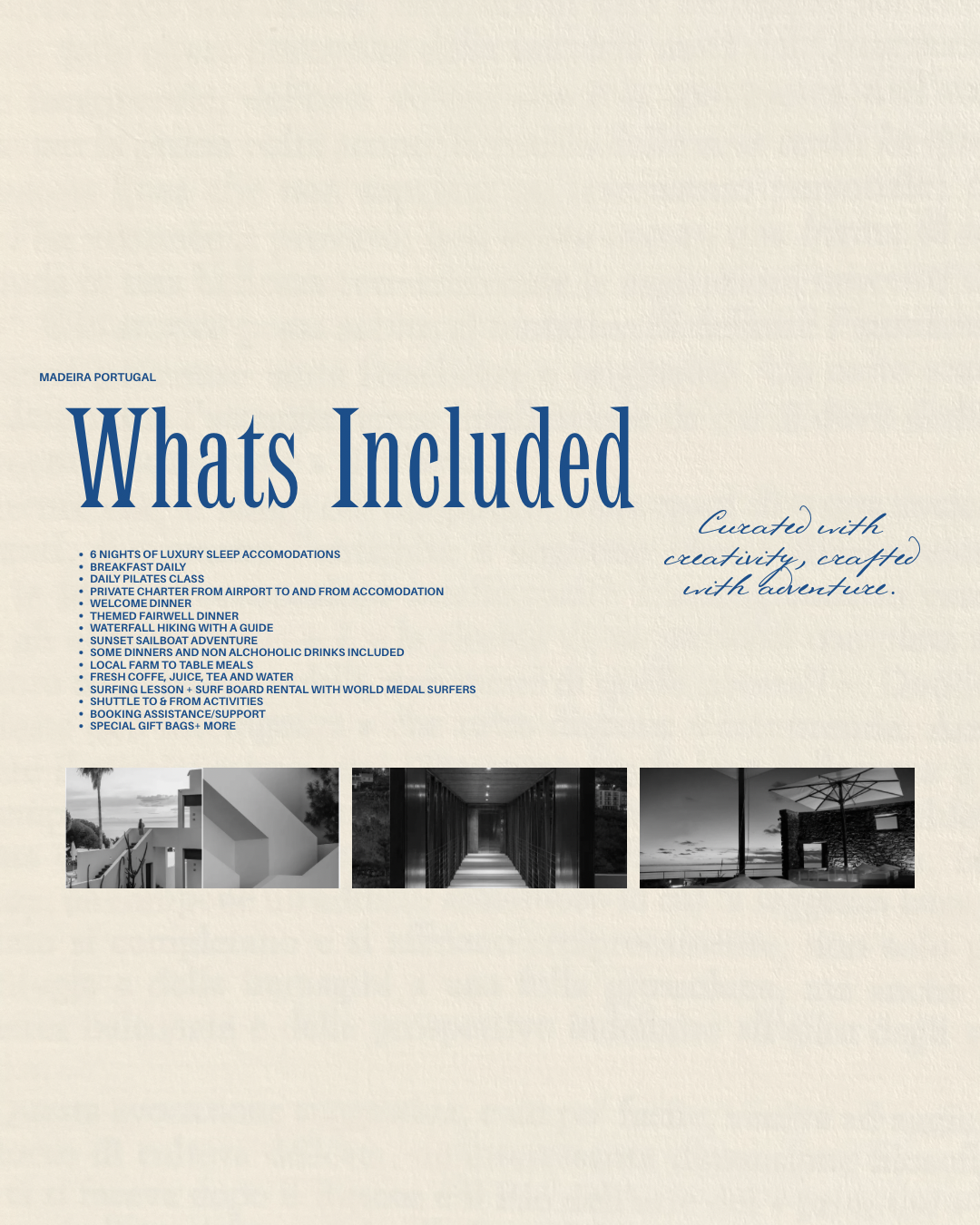 itinerary subject to change based on weather and availability.